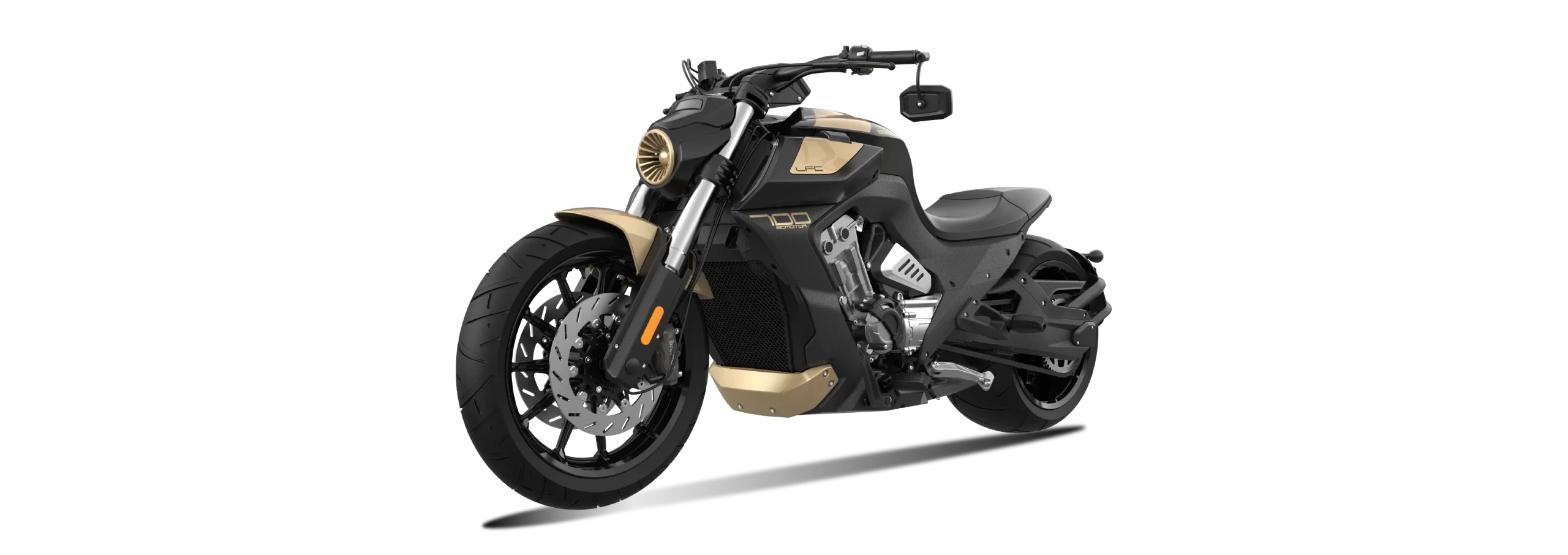 Muskularna, długa sylwetka, która od razu przykuwa wzrok, ostre linie i charakterystyczna maska to nie jedyne elementy, które wyróżniają LFC 700 Pro. Prawdziwą ozdobą i znakiem rozpoznawczym jest tylna opona o szerokości 300 mm, która nadaje maszynie niespotykanej, potężnej postury. Zintegrowane, futurystyczne oświetlenie LED nadaje jej drapieżny charakter, a minimalistyczne, czyste linie podkreślają, że LFC 700 Pro to projekt z przyszłości. Nie można pomylić go z żadnym innym motocyklem.